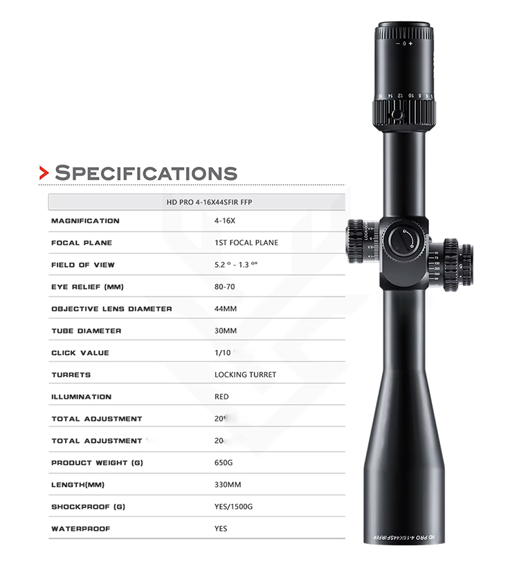 Optics HD PRO 4-16X44 SFIR FFP Hohe Stoßfestigkeit Jagd Zielfernrohr Taktisches Langstreckenschießen 30mm Rohr