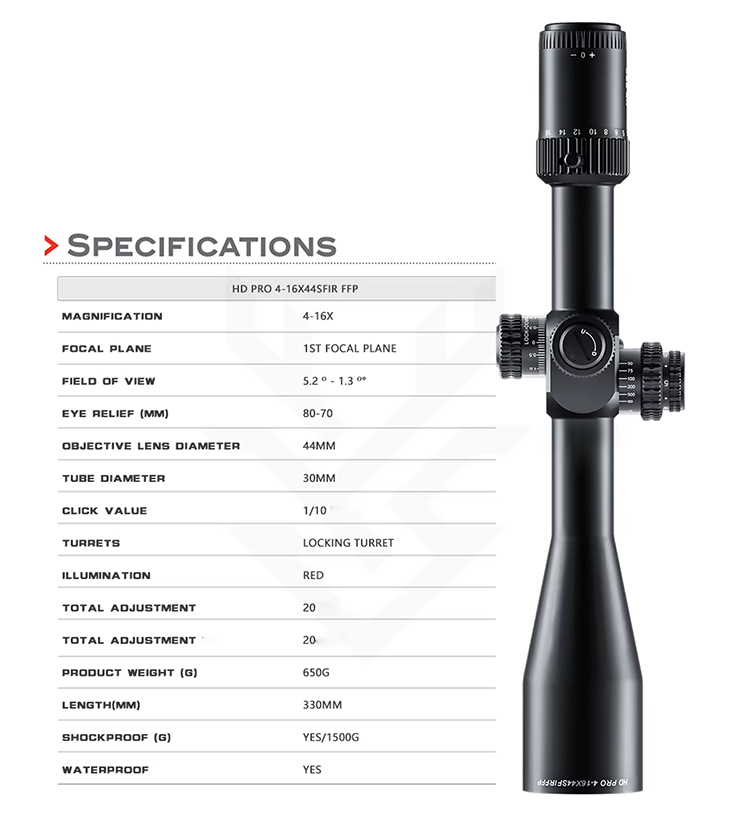 Optics HD PRO 4-16X44 SFIR FFP Hohe Stoßfestigkeit Jagd Zielfernrohr Taktisches Langstreckenschießen 30mm Rohr