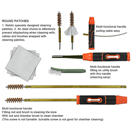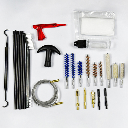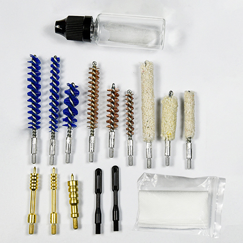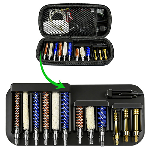 Das Reinigungsset für Gewehre und Handfeuerwaffen enthält 3 Größen (Kaliber .22, Kaliber .30 und 9 mm). OX-Stoff beschichtetes PVC-Etui mit Reißverschluss. Messingbürsten, Baumwollmopps, Nylonbürsten, Messingzacken, 5 Ruten 1 Kaliber. Sandfarben und schwarze Farbe zur Auswahl.