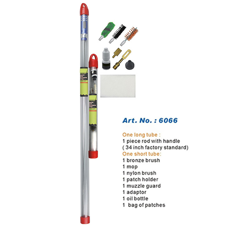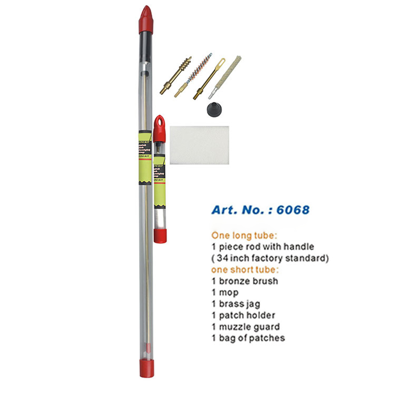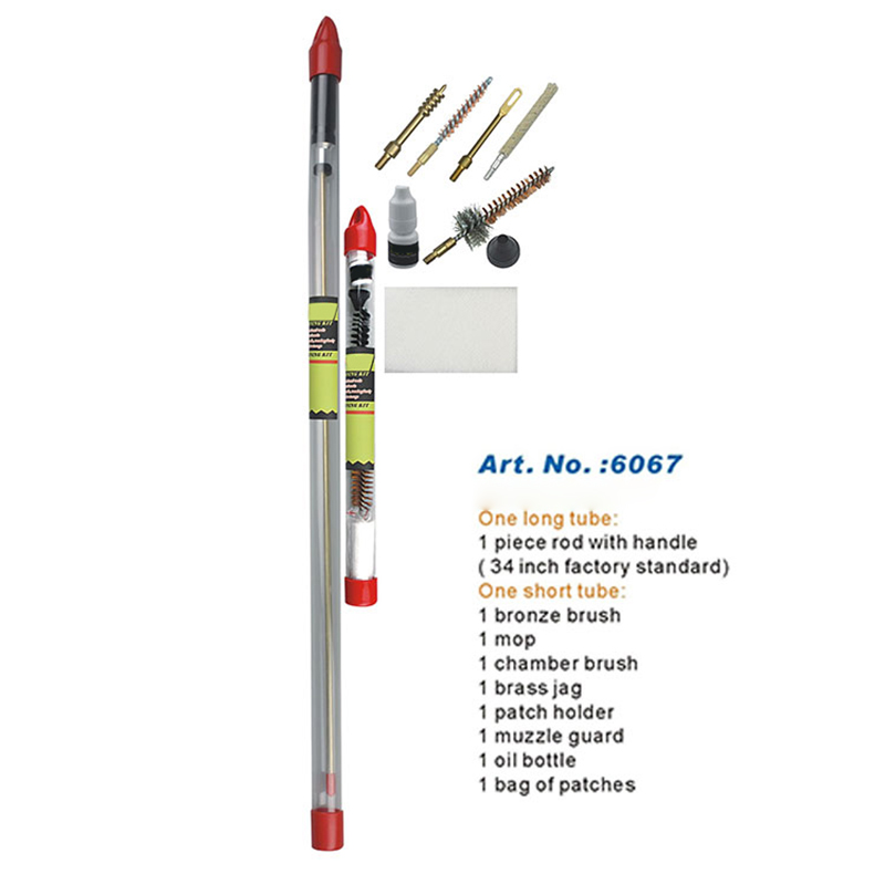 Das in Tuben verpackte Waffenreinigungsset bietet viele Vorteile: einteiliger langer Stab mit drehbarem Aluminiumgriff, kein Schneiden; verschiedene Bürsten und Zubehör; verpackt in einer tragbaren langen Röhre. Für Anwender mit hohen Ansprüchen an die Waffenreinigung ist dies die gute Wahl.