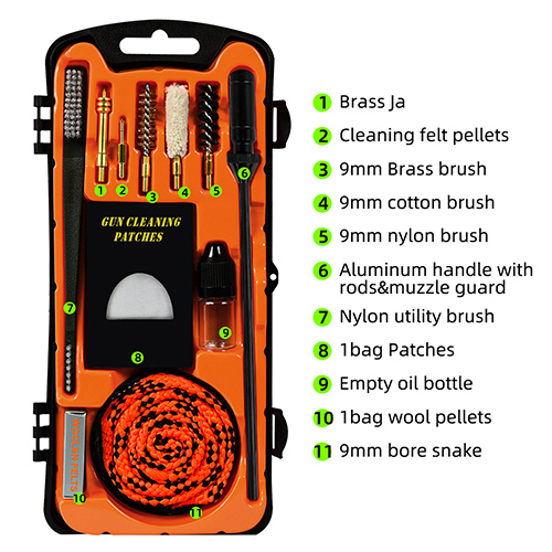 Schrotflinten-Reinigungsset, großes orangefarbenes Gehäuse