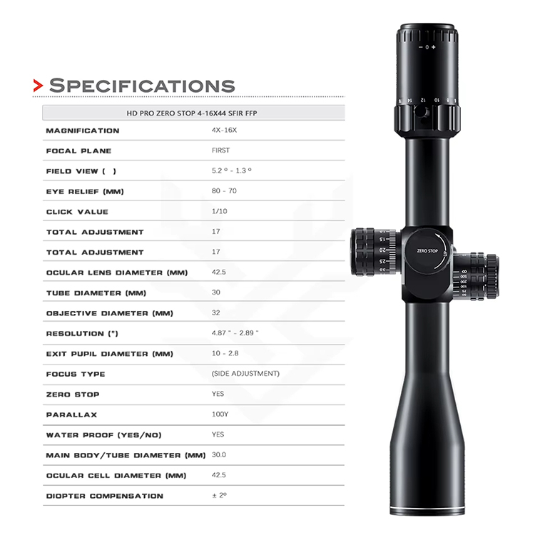 ZERO STOP 4-16X44 SFIR FFP-A 30 mm Durchmesser HD lichtdurchlässiges Zero Stop Jagdfernrohr Ffp